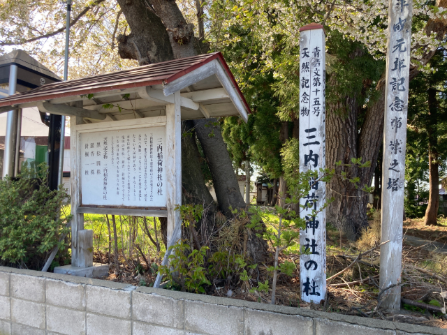 三内八幡宮を出て、少し南に鎮座する三内稲荷神社に参拝しました。菅江真澄が立ち寄った稲荷の社です(菅江眞澄「すみかの山」)。この辺りは、当時は小三内、あるいは向三内という村だったようです。